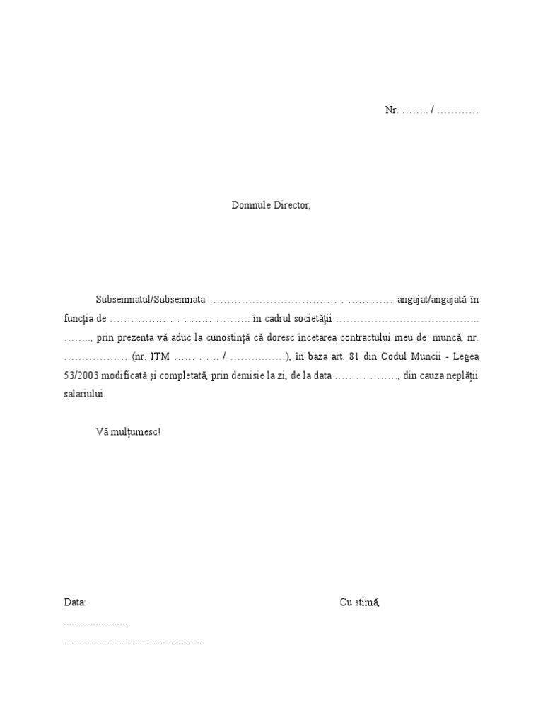 Cerere De Demisie Cu Preaviz 2021 from pdfcoffee.com Codul muncii despre demisie modele cerere de demisie cu și fără preaviz Demisia este o notificare oficială a salariatului catre angajator cu privire la. Schimbarea jobului nu este o decizie pe care o iei usor, mai ales atunci cand ai vechime la un loc de munca, insa demisia face parte din viata oricui mai devreme sau mai.