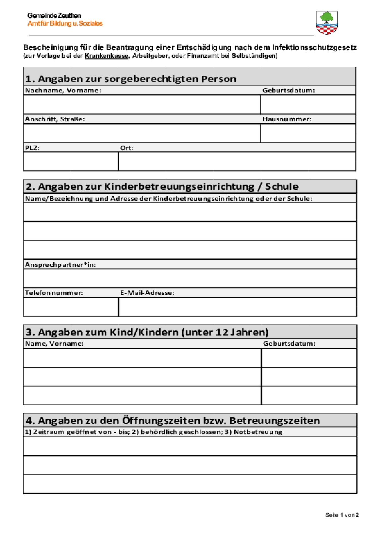 Antrag auf notbetreuung in kindertagesbetreuungseinrichtungen und schulen bis zur klassenstufe 6 mit arbeitgeberbescheinigung zum nachweis der berechtigung für die notbetreuung (11.