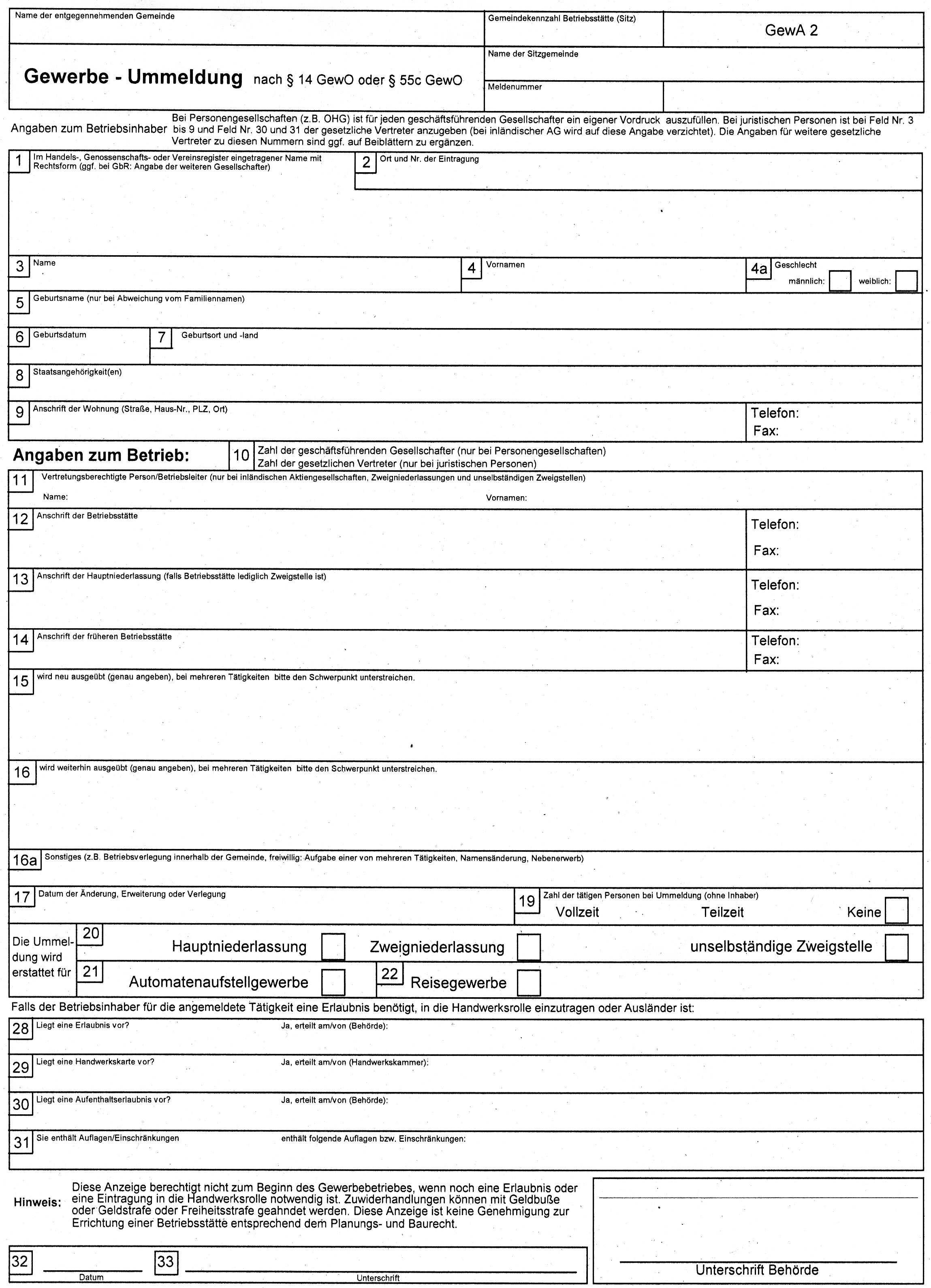 Kreisverwaltungsreferat (kvr), hauptabteilung iii münchen die gewerbeordnung geht vom grundsatz der gewerbefreiheit aus. Ohg) ist für jeden geschäftsführenden gesellschafter. 30 und 31 der gesetzliche. Nach §14 gewo oder §55 c gewo.