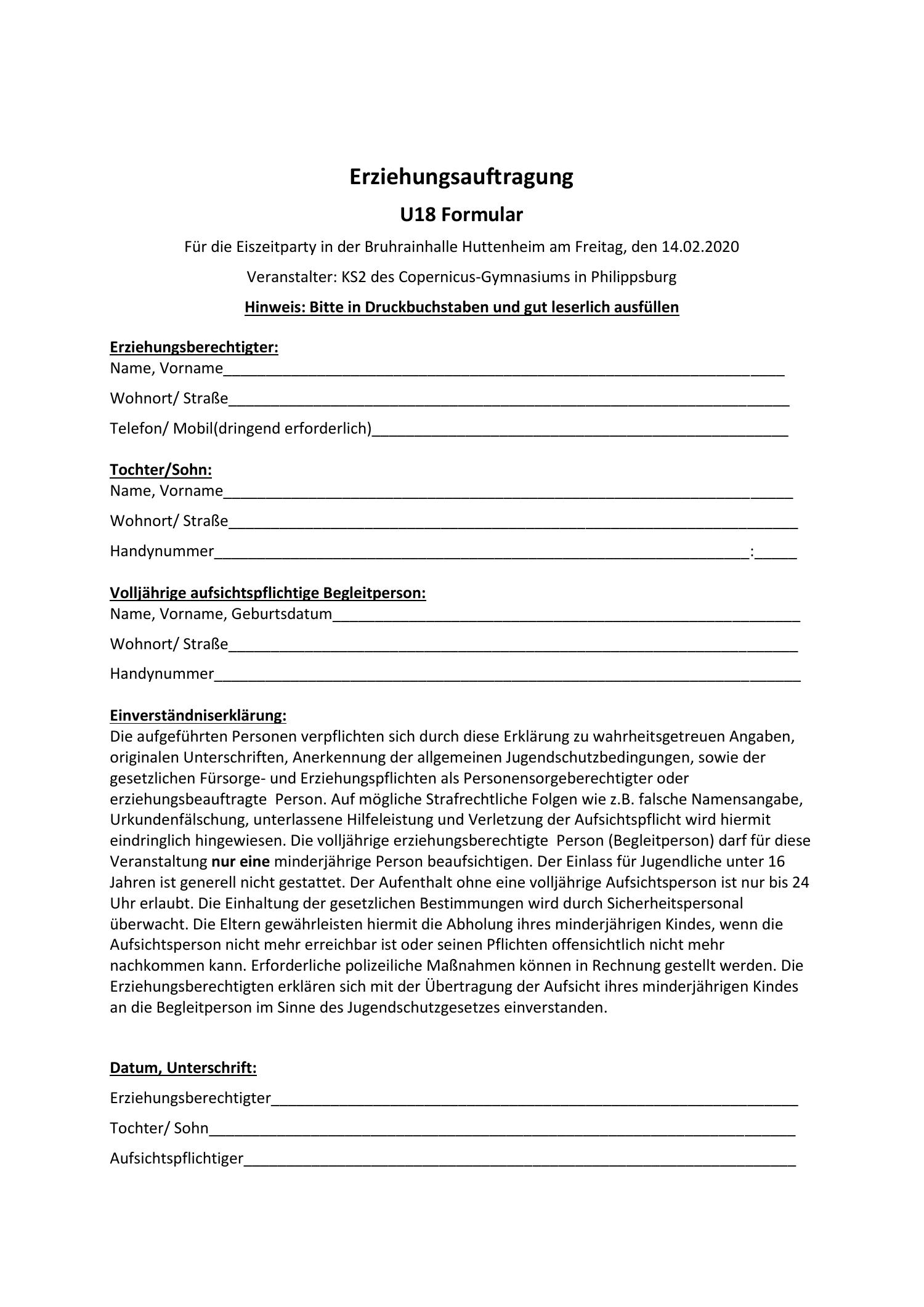U18 formular mit diesem formular haben auch alle unter 18 jahren die möglichkeit freitags im ballhaus zu feiern alles, was wir.