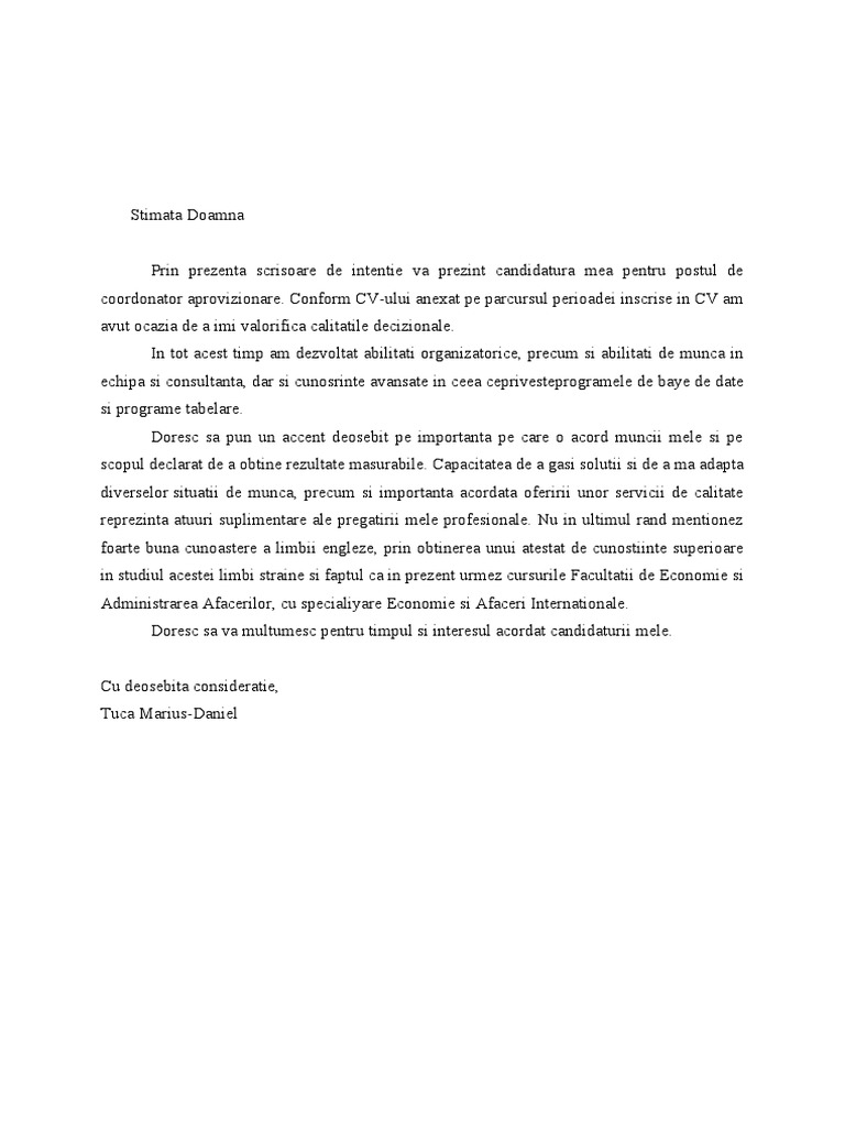 Model Scrisoare De Intentie Pdf