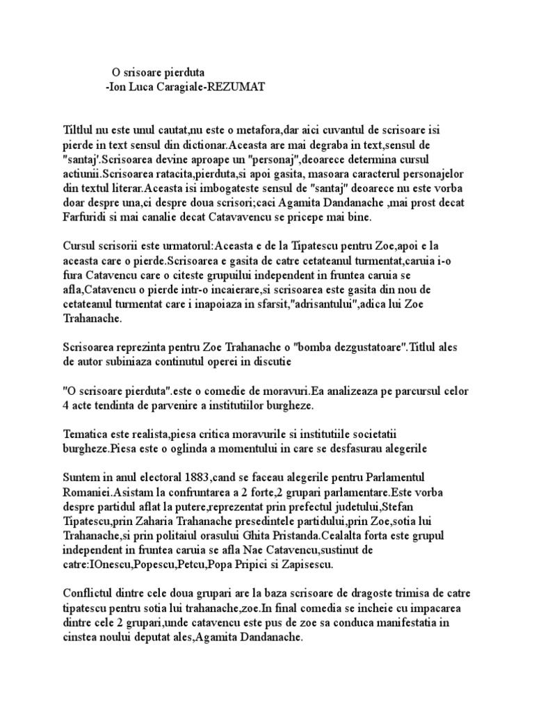 O Scrisoare Pierduta Comentariu Bac Pdf