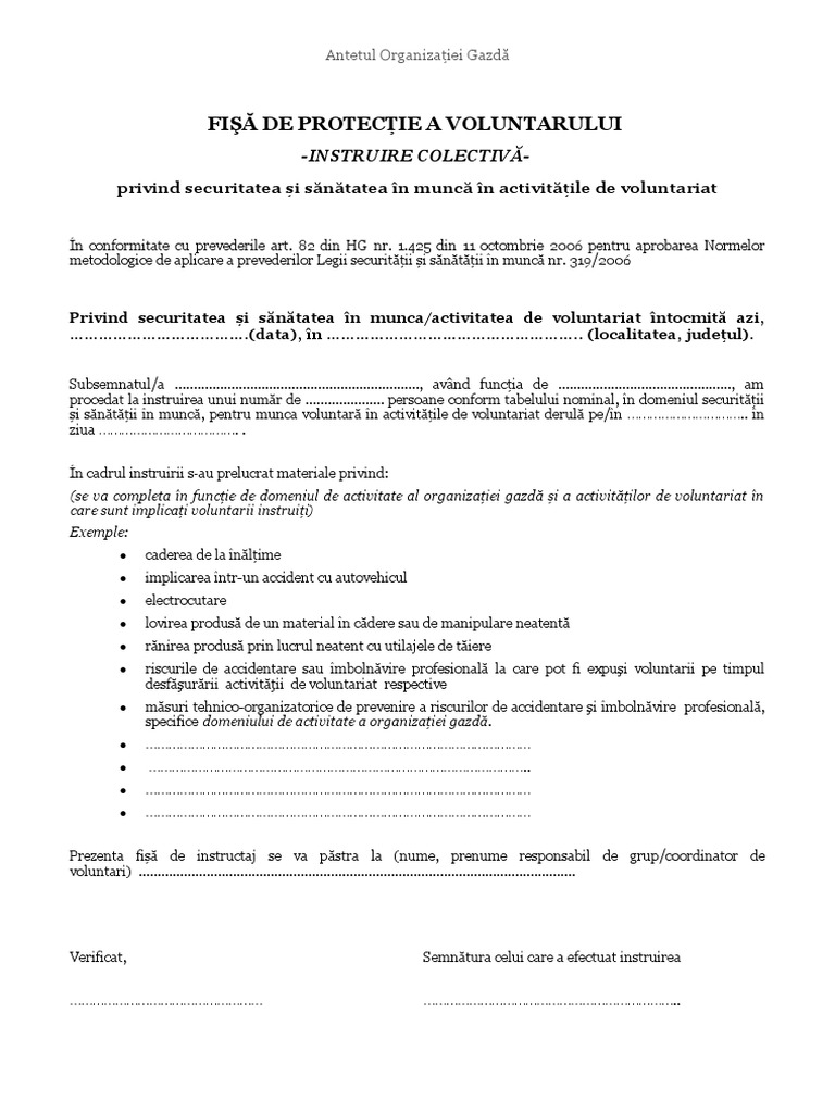 Fisa De Protectie A Voluntarilor Pentru Instruirea Colectiva Pdf