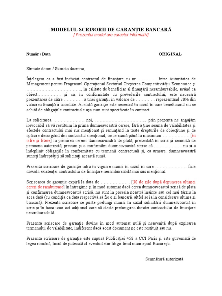 Modelul Scrisorii De Garantie Bancara Pdf