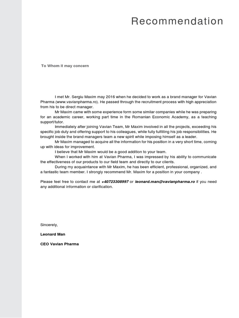 Doamnei Irina Matei Vă scriu această scrisoare de intenție ca răspuns la anunțul dumneavoastră pentru postul de bucătar publicat pe site-ul MyNextJob. Productie scrisoare de intentie in engleza it distractie bacalaureat subiecte admitere mba firma concediu contract medical logistica team-building turism teste de recrutare cv european model cv model cv engleza focus grup secretariat inginer scrisoarea de intentie cover letter burse de. Acest șablon de scrisoare accesibil vă va ajuta să scrieți o scrisoare de recomandare pentru un manager care a lucrat pentru dvs.