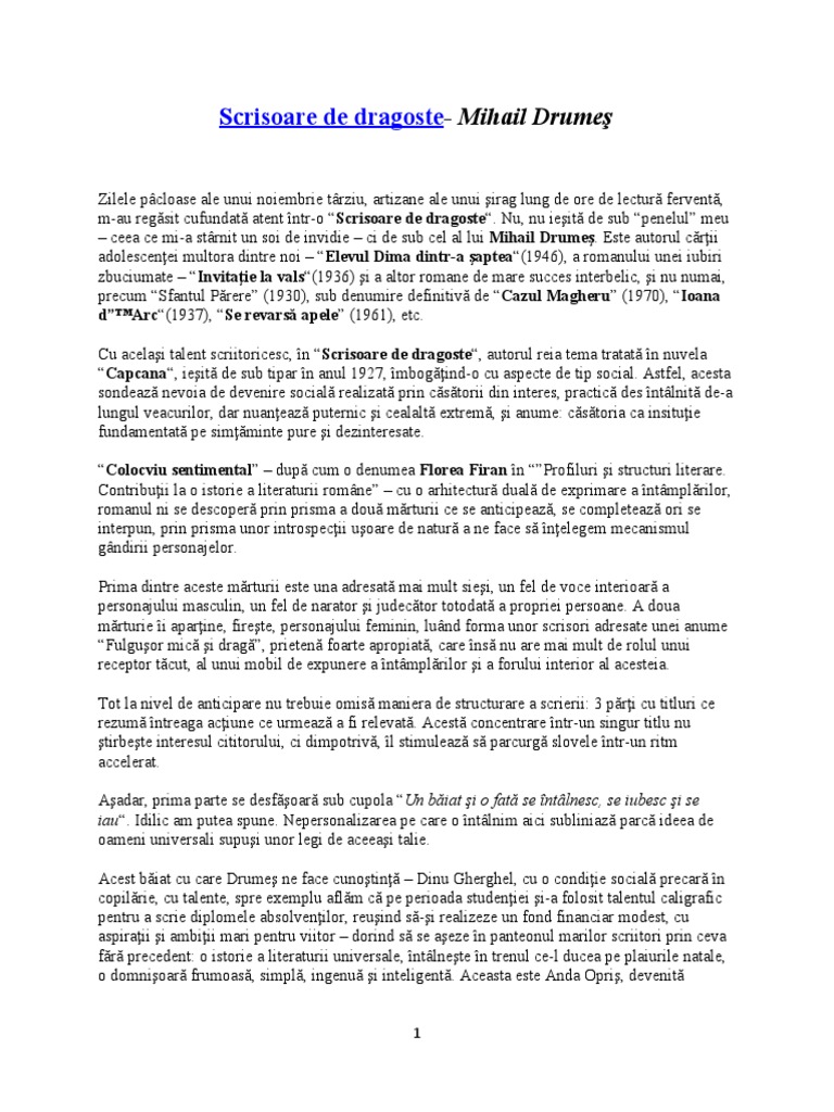 Rezumat Scrisoare De Dragoste Mihail Drumes Pdf